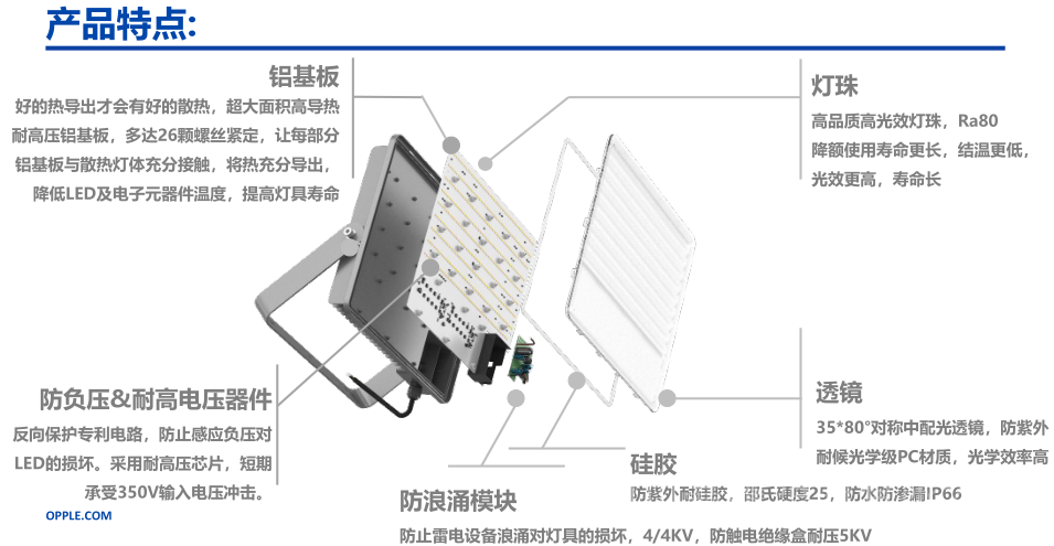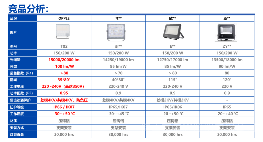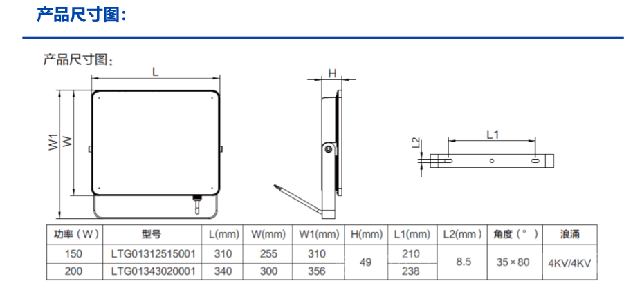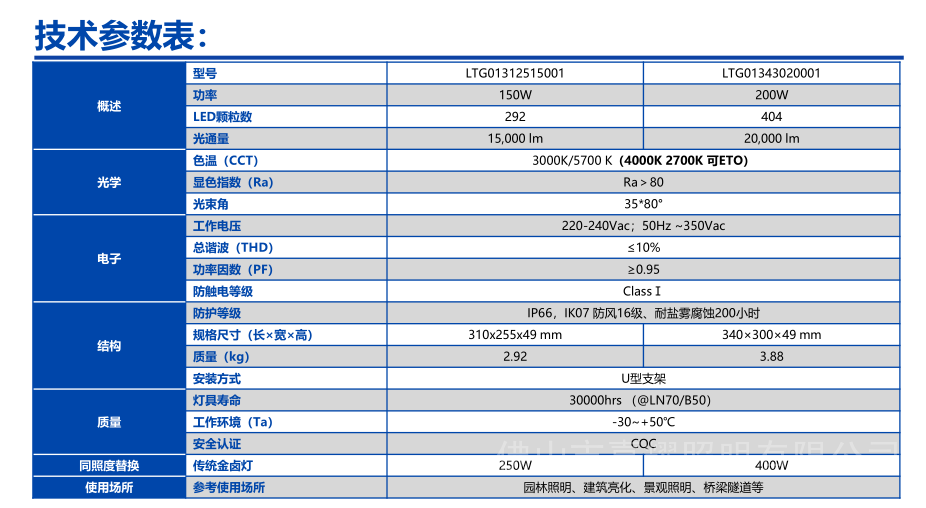| 709000014100 | LTG | LTG-OPT02-150W3080D30K220V-OF | 310x255x49 | 220 | 150 | 14250Lm | ≥0.95 | ClassⅠ | 35*80° | 3000K | >80 | 30000H@L70B50 | IP66 | IK07 |