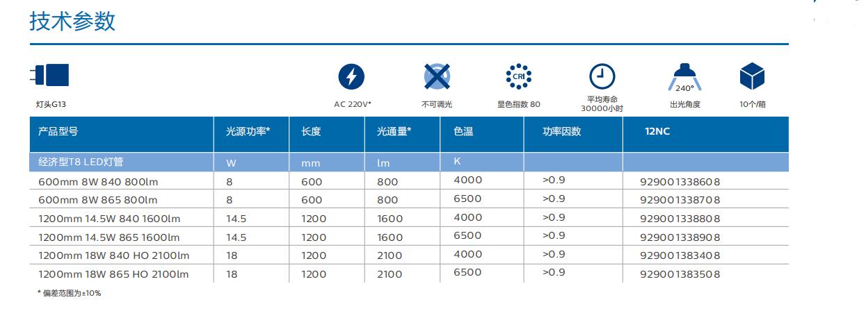 | 灯头规格: | G13 |