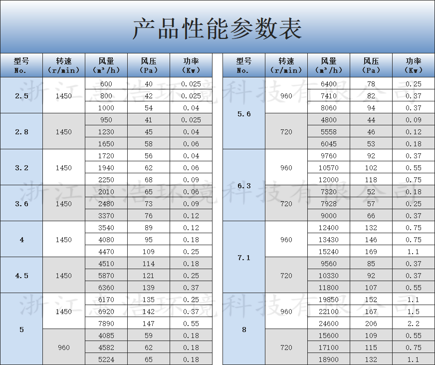 规格:2.5#-8# 风量:600-20000m3/h 全压:40-242Pa