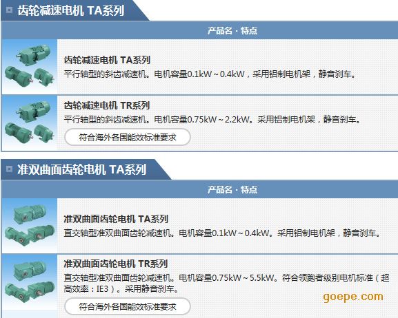 由于节能意识的提高,世界各国纷纷采用了高效能电机生产·销售法律规制。椿本的小型齿轮电机TR系列符合日本国内和世界各国的能效标准要求,是满足时代要求的高规格产品。