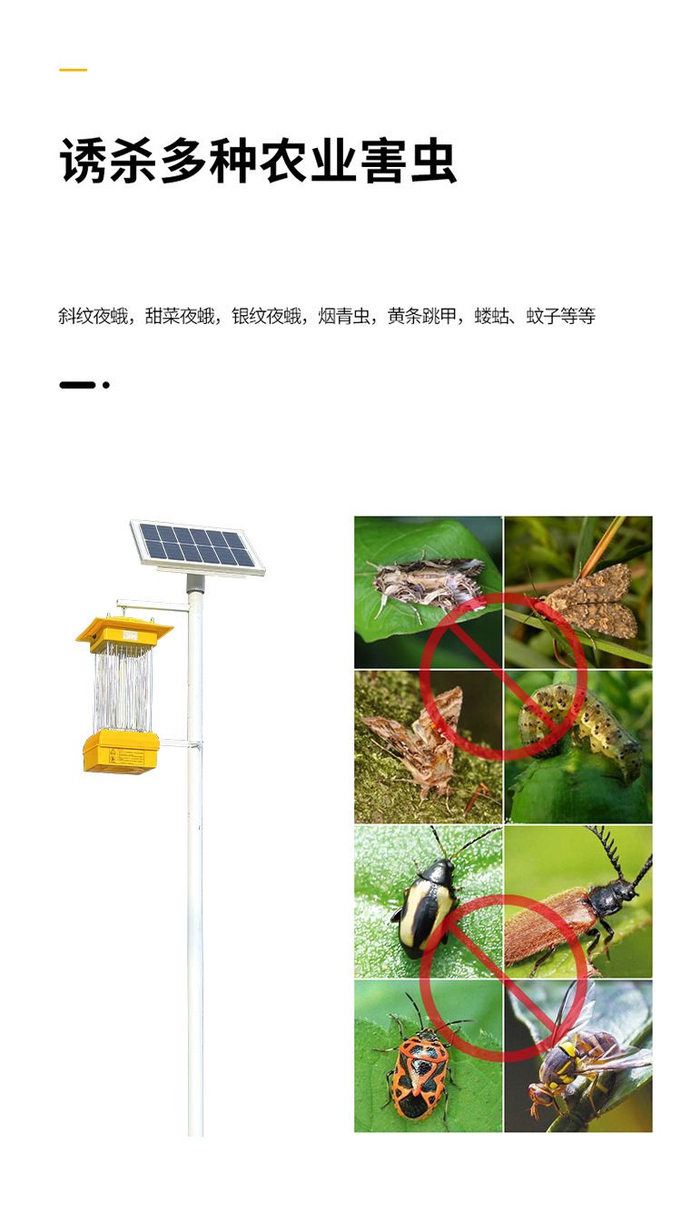 太阳能杀虫灯是一种利用太阳能供电、通过特定光谱和物理方式诱杀害虫的环保设备,广泛应用于农田、果园、茶园、林业等领域,有效减少农药使用,保障生态平衡和农产品安全。