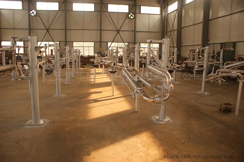 伴热鹤管,又称液体装卸臂或输油臂,由旋转接头、内臂、外臂、垂管、平衡器、控制系统以及加热装置等部件组成。它主要用于汽车槽车、火车槽车或槽船等装载台与运输工具之间传送液体或气体产品。