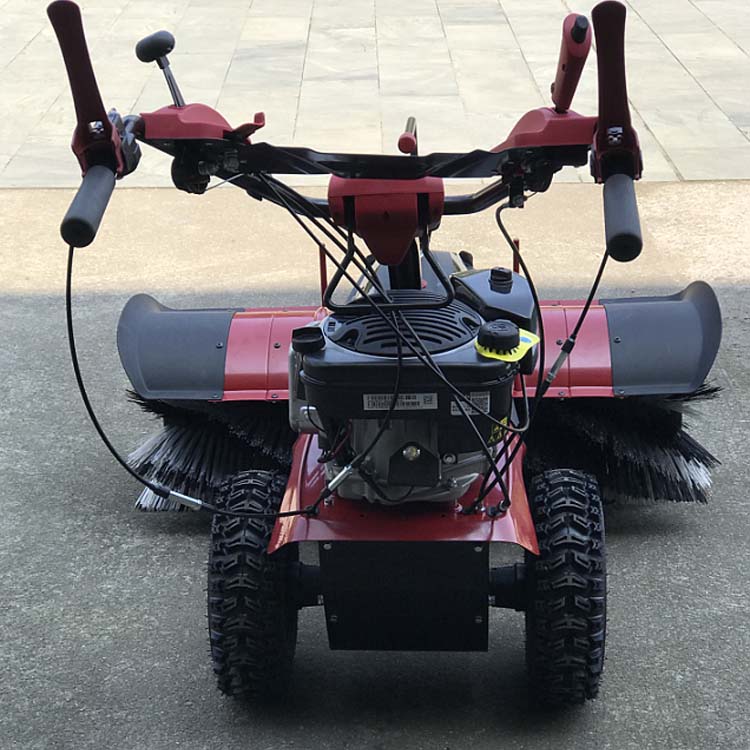 SSJ1500新款扫雪机是一款多功能步道扫雪机,完全按照国外技术的原理国内生产下线的全新产品,全液压湿式离合系统,油浴式全齿轮传动。采用15HP专用雪地动力发动机,高级耐磨聚混合滚刷,扫雪动力强劲, 使用寿命超长,地面积雪清扫效果非常干净。该机和其它扫雪机不同的是国内率先液压系统的应用,一改以往皮带传动带来的损耗,让您更安心于机器的稳定性。同时多功能快接转换的应用,快速更换不同的功能部件,实现抛雪,扫雪,铲雪等功能一体化,还可根据客户方的需要随时更换更多的功能机头用于剪草,扫地,犁地等工作,是款功能多样化,使用方便化,价格大众化的新品。主要的是该机型目前配置了破冰机头,可以针对压实的积雪和冰层进行破除清扫。该型扫雪机配备超大防滑轮胎,适合平地及山地坡道上行走,配有转向设置,可原地轻易的转弯,适用于人行步道这种非机动车道的清扫及清雪。前刷部分可左右调角度且高低可调,同时可根据操作人员的身高调节操作盘的高低。该机同时配有电启动和手动两种启动方式,即使天气寒冷也容易点火,寒冷不是问题。
