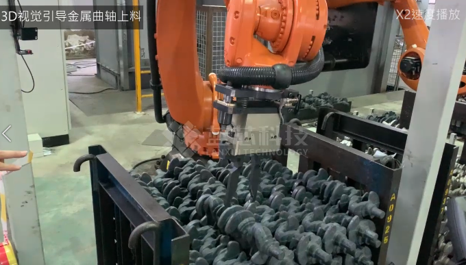 在一家车企的曲轴加工车间,通过Wukong3D视觉传感器引导机械臂完成曲轴上下料,提高了企业作业效率。·