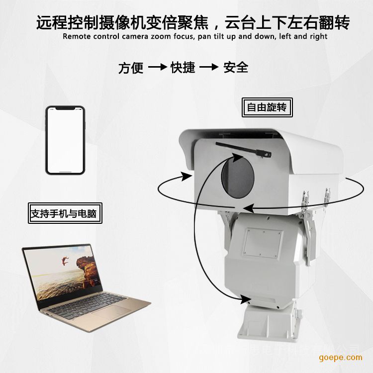 | 云台性能 | 水平范围 | 0 ~ 360°连续旋转 0.01°/s~60°/s 速度可设 | ||
