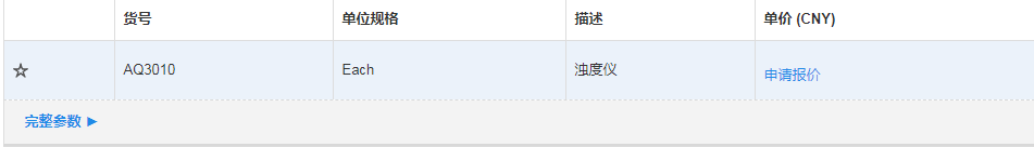 Thermo Scientific Orion AQUAfast AQ3010 浊度仪在几秒内即可得到浊度读数。 本浊度仪外形简单但功能强大,可提供一系列令人印象深刻的功能,适用于工厂、野外和实验室。