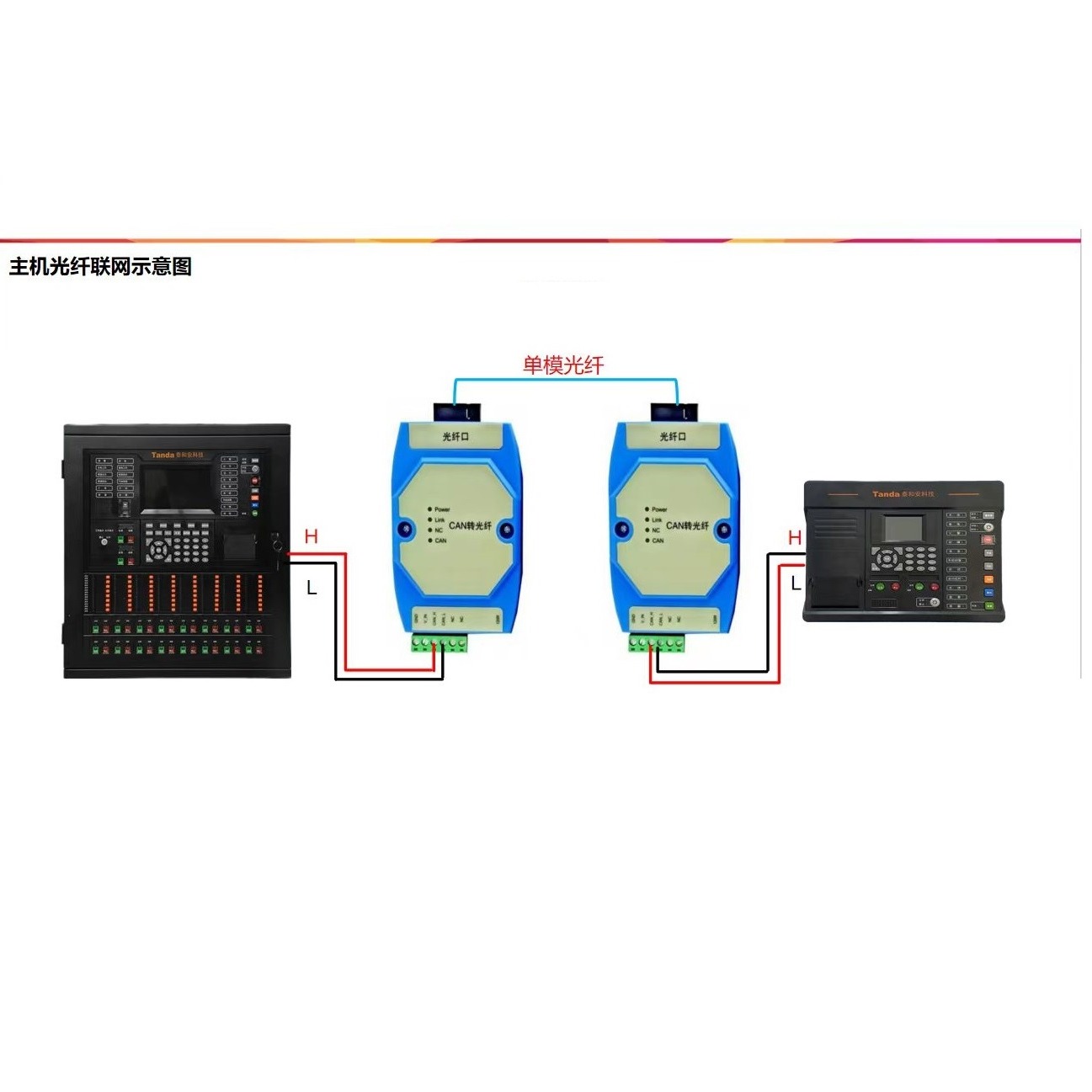 宏盛佳消防主机光纤联网通讯 can光端机进行冗余环网组网转换器CAN